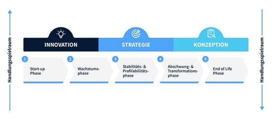 - Stabilitäts- & Profitabilitätsphase: In dieser Phase liegt der Fokus auf der Stabilisierung und Optimierung Ihrer Geschäftsprozesse, um langfristige Rentabilität zu sichern.